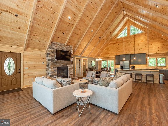 Luxury cedar chalet in the heart of Deep Creek Lake. This custom lodge sits beside the ASCI whitewater course, placing you in the center of Garrett county’s year-round outdoor scene and just minutes from local shops and restaurants. The community trail gives direct access to Wisp on one side, and Fork Run’s 550-acre nature preserve on the other. Finished in 2022, the home was crafted for open-concept living with two full stories of light and space. Vaulted ceilings and a wall of glass on the chalet’s prow pull in the mountain setting and set the tone the moment you walk in. Two large primary suites and four spacious en-suites, make the layout ideal for multiple families. Hardwood floors, granite counters, and stainless appliances blend rustic warmth with modern comfort. Stacked-stone fireplaces anchor both the main living area and the lower-level rec room. An established vacation rental, “Alpine Summit” grossed over $75,000 in its first full year on the market! You do not want to miss one. Call today to schedule your private showing!