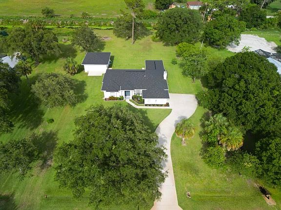 Home on one acre West of Fort Pierce. This 3 bedroom, 2 bath, 2 car garage home offers 10 ft. ceilings and additional 750 SF detached 2 car garage or workshop. The living room offers double doors to the enclosed porch. The dining room has a beautiful view of the front yard to admire the evening sunsets. The Kitchen has been updated with white cabinets and granite countertops. Beautiful stainless steel appliances. The sitting room features a fireplace. The back of the home offers an enclosed porch with windows that over look the back yard, also leads to the workshop. NEW ROOF with Architectural Shingles ON HOME & Detached GARAGE. The homes has 2 wells, 1 well is for home the other well is for irrigation and the sprinkler system. County Taxes. Sellers are Motivated.