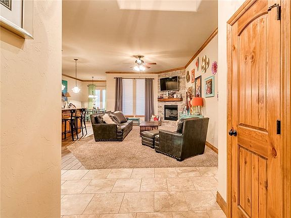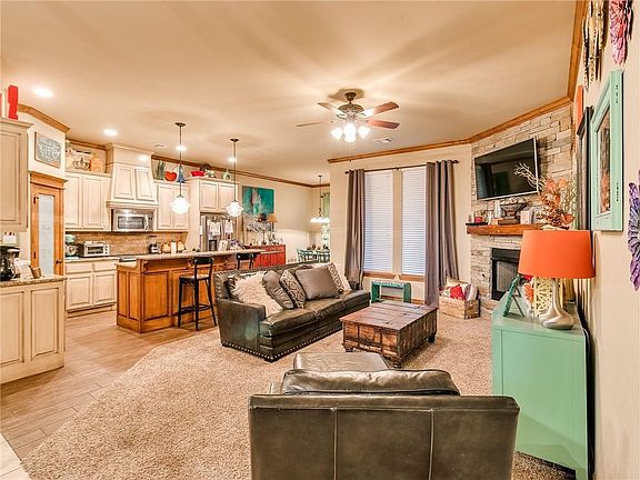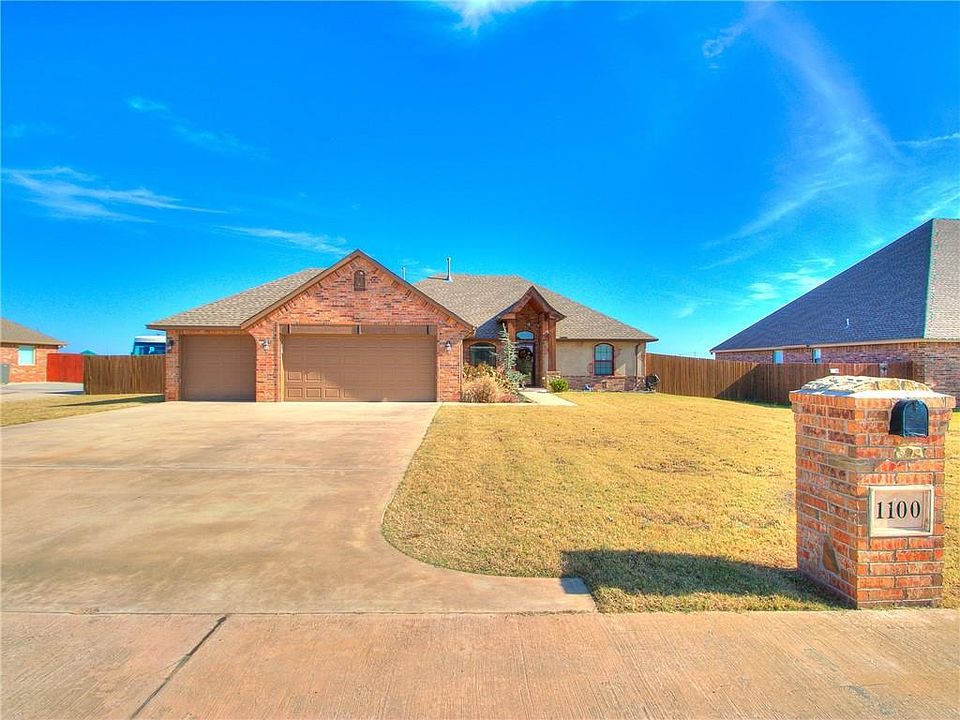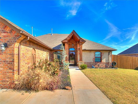 This beautiful 3 bedroom, 2 bathroom home with a study and a 3 car garage features a .42 acre lot in a shop-approved neighborhood in Tuttle School district! The spacious, open concept living area includes a large stone fireplace, stained wood trim and crown molding. This kitchen boasts granite countertops, white painted cabinets, stainless steel appliances, a large pantry and an oversized island with tons of storage! The master suite features tray ceilings, his and hers vanity, walk in closet, walk in shower, and jetted whirpool tub. Other interior features include engineered wood floors and French doors in the study, another spacious full bath with two vanities, and closet space in additional bedrooms. Exterior features of the home include a covered patio, storm shelter in garage floor and a huge backyard with tons of opportunity. Home is located just 5 minutes from Mustang and 15 minutes from OKC.