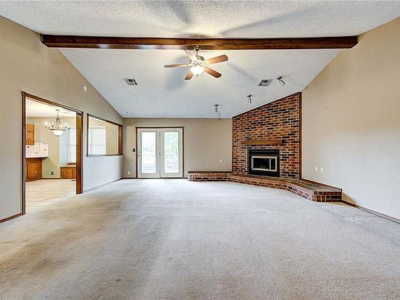 This wonderful home is perfectly located in the Trails South addition! Upon entry you are drawn to the large open living room with cathedral ceiling and oversized fireplace. The spacious kitchen has a breakfast bar, stained cabinetry, abundance of storage and is the perfect space for gathering together. The large master bedroom features a full walk-in shower, cozy vanity and sizable closet . Three additional bedrooms complete this home. The backyard has plenty of room to run and entertain with access to local walking trails and parks. Located in Edmond schools. Welcome Home!