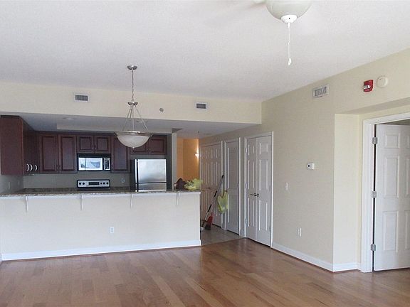 Upscale gated condo with granite counter tops, beautiful hardwood floor, large balcony facing the Stadium.
