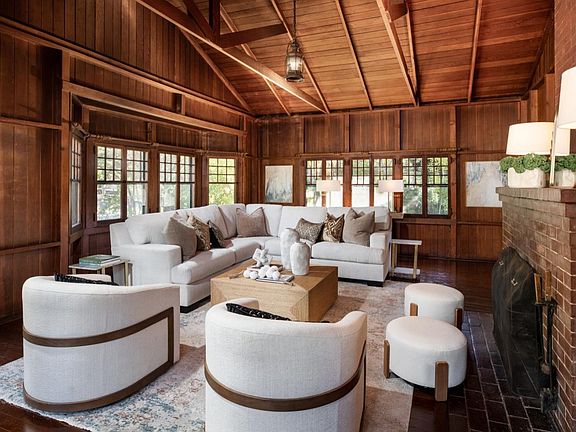 Outstanding location in the heart of Professorville, just blocks to downtown, this classic craftsman shingle home sits on a sunny south-facing corner lot and showcases timeless character throughout. A welcoming porch with Dutch door opens to an impressive great room with soaring beamed ceilings, bay-window seating, double-hung windows, original wood paneling, and a clinker-brick wood-burning fireplace. The dining room offers display shelving and a vaulted, exposed-beam ceiling, while the kitchen retains vintage charm with an antique enamel-finished gas range, granite counters, and a wall-mounted faucet. A main-floor bedroom adjoins an enclosed sun porch with access to the rear patio, complemented by a full bath with cast-iron tub and a separate laundry room-all on the mail level.