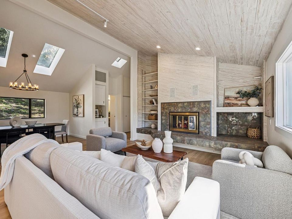 Step inside to soaring ceilings and an open-concept kitchen, family room, and dining area bathed in natural light from abundant windows and skylights, seamlessly connecting to an expansive outdoor deck. The main level features a luxurious primary suite with oversized closets, a remodeled spa-like bathroom with a soaking tub, and a private deck for tranquil moments.