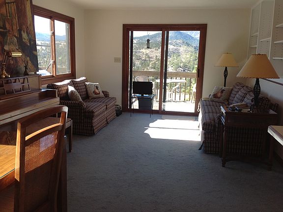 You will love the rustic sophistication of this unique duplex! Entire main level of 2-story hillside home. Is upstairs but has ground level entry from the east-facing patio. Owner lives in completely separate downstairs walkout level. Two west-facing decks complete your living areas. House was rebuilt in 1988, refurbished and bonus room/office added in 2006. Kitchen has island and pantry, is open to L/D area. Large MBR w/deck, dressing area, entry to bath. Smaller second BR/Den has large closet. No bed now, but can manage a queen bed against wall. Large bath across hall from this BR has dual lav w/cabinets and large mirror, ergonomic toilet, large glass 'n tile shower with stationary and handheld shower heads. Bonus room/office has main of 2 entries from patio, tile floor, stacking w/d, coat closet, mechanicals behind louvered doors and two large windows with magnificent views! Wonderful peace and serenity while only a paved mile to Hwy 36, then 2.5 miles to Lyons! Makes for easy commutes to work, shopping and recreation. School bus at driveway. Driveway makes the privacy and panoramic views possible but requires a front-wheel drive vehicle in winter. No smoking on premises! Indoor (mostly) pets on approval - must protect wildlife and pets! Five hours/month help with the grounds required. FinchHaven needs responsible people who will respect this private nature preserve and the lovely, freshly painted and scrubbed living quarters w/eco-glass wood windows, PET carpet, evaporative cooler, quality furniture - even may include oil paintings and the walnut Steinway console piano, tho it's for sale. Newer cistern, water softener/filter plus RO filter at kitchen sink. This is affordable luxury and a must see! Call for directions as the online maps for my location on CR71N (aka Blue Mountain Road) are mostly wrong, including Zillow's. Take Apple Valley Road, left off of Hwy 36 from just outside Lyons to its return to Hwy 36 at CR71N, to avoid traffic delays for flood damage repair on Hwy 36. Then cross Hwy 36 and go 1 mile north. Address is on post of mailbox at the base of my hidden driveway (first driveway past Hidden Drive sign).Utilities included except phone and DishNetwork, which are available but extra. Wifi is included!Possible energy surcharges come winter.Deposit is not for last month's rent.