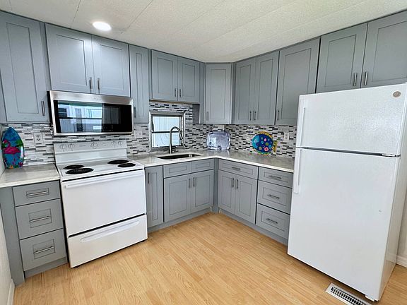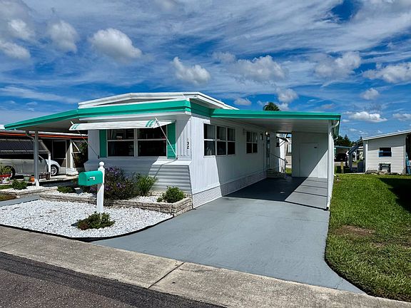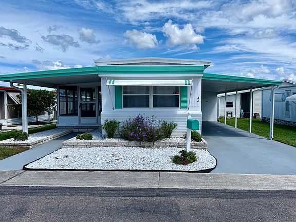 Well-maintained and beautifully updated, this home offers numerous modern improvements throughout. The HVAC system was replaced in 2021, and in 2022 the majority of the home received upgrades including a new electric panel, updated plumbing, and a hot water heater. The kitchen has been fully remodeled with granite countertops, hardwood cabinets, soft-close drawers, a large single-basin stainless steel sink, and updated lighting. The spacious living room features a newer ceiling fan and a built-in desk, while the bathroom was remodeled in 2025 with a step-in shower, updated sink and vanity, new toilet, and fresh flooring. The bedroom boasts updated flooring, a remote-controlled ceiling fan, two closets, and built-in drawers. Additional upgrades include fresh interior paint, custom curtain rods, and blackout curtains. The Florida room has also been updated with new flooring and a newer Samsung washer and dryer. A roof-over was completed in 2013 for added durability. Outside, the large carport can accommodate at least two cars and includes an attached shed with shelving for extra storage. Low lot rent of 643 a month which includes trash and lawn maintenance. Situated in a sought-after community adjacent to the Pinellas bike trail, the home offers a 5-minute drive to Honeymoon Island State Park and its beautiful beaches. The Honeymoon Park community features amenities such as a heated pool, clubhouse, shuffleboard courts, horseshoe pits, and various weekly activities. Downtown Dunedin, known for its restaurants and shops, is conveniently close. Additionally, the Pinellas Trail Loop, a 75-mile multi-use pathway, runs alongside the community. While all information is considered reliable, we encourage prospective buyers to conduct their own personal inspections for a comprehensive understanding of the property's condition and measurements. Please note that American Mobile Home Sales of Tampa Bay Inc. cannot guarantee the accuracy of this information. As a buyer, you will be responsible for all closing costs, sales tax, and title transfer fees associated with the purchase. The buyer assumes full responsibility for obtaining all current rates for lot rent, fees, and any pass-on costs, as well as to familiarize yourself with the lease agreement and community regulations. For these details, please reach out to the community or park manager directly. American Mobile Home Sales of Tampa Bay Inc. is not responsible for quoting said fees or policies.