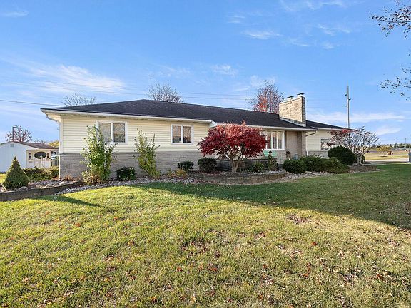 Come see this amazing ranch style home with a finished basement before it is gone. This well maintained home sits on a corner lot with just over a half an acre and is located right across from the Bluffton School. There has been so many stunning flowers and greenery planted all around the home and a cute matching 12x16 shed for all your lawn care needs. The home offers unique brick pavers around both sides of the home giving it a charming touch. This home has its own private well so say goodbye to a water bill. It also has a two car garage with lots of room for storage and has a newer Helmet Gutter system and has buried downspouts keeping water efficiently away from the home. One of the many features this home provides is having over 2200 sq ft of finished space in addition to the ample amount of storage this home offers. As you enter the home it comes with a formal living room equipped with 1 of three fireplaces. There is an additional family room with stunning natural light, high ceilings, crown molding and a wonderfully crafted imported brick woodburning fireplace that will sure catch your eye. The kitchen comes with natural wood cabinets, plenty of countertop space, a built-in space for the desk and all the kitchen appliances stay. This lovely home has 3 bedrooms and a full bathroom all within close proximity of each other. This home also has a half bath on the main level where the stacked washer and dryer are located and also stay with the home. As you descend to the basement you will notice how magnificent the space truly is. The partially finished daylight basement has so many possibilities and includes the pool table for added fun and houses the third fireplace of which is gas. The remainder of the basement holds a lot of unused space perfect for storage or anything you may want it for. There is even a shower room that has great potential. There have been some recent updates with the home including the water softener, the furnace (heat pump with central AC) with Aprilaire humidifier and the windows in the family room are all newer. Request an appointment to take a look at your next home!