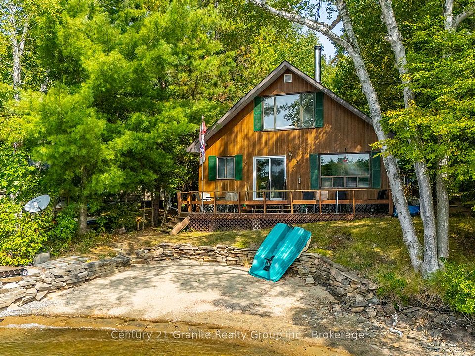 First time offered on what can be considered the perfect cottage property on Mountain Lake, one of the Highlands most desirable lakes. South West exposure, gradual sand beach just steps from the cottage with great swimming off the dock. This seasonal cottage is Ginger Bread Style, open concept to the principal rooms, three bedrooms on the main level, along with a massive bedroom on the second floor (perfect for the young ones). This offering comes complete with absolutely everything, just bring the groceries. There is also a fully furnished two room bunkie, wood shed and an oversized garage. The cottage could be fully winterized and with a bit of work for year round use. Mountain Lake has it all with great boating and fishing and is just minutes north of Minden. There's no doubt you will be pleased with what you see.