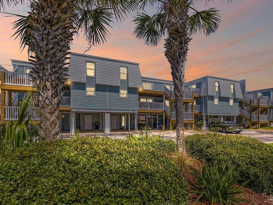 Turnkey Beachside Living at Boardwalk Condominiums. This beautiful 2-bedroom, 2.5-bath condo at Boardwalk Condominiums is move-in ready and ideal as a primary residence, vacation retreat, or investment property. Just steps from the sugar-white sands of the Gulf of Mexico, this unit boasts two spacious decks offering stunning Gulf views. Recent exterior renovations are fully complete, including all-new composite decks, PVC railings, updated sliding door headers, and durable Hardie plank siding—adding both value and peace of mind, with no cost to the owner. Inside, the main level features a bright and open living area, fully equipped kitchen with pantry, half bath, and a utility closet housing a new tankless water heater and washer/dryer. Upstairs, you'll find two bedrooms each with en-suite bathrooms and private access to the upper deck. The primary suite includes a charming beadboard ceiling and a queen-size bed, while the second bedroom offers a twin-over-full bunk setup—perfect for guests or family. The Boardwalk community offers additional amenities including a pool with changing rooms, clubhouse, private fishing dock, and a large sound-side beach on Santa Rosa Sound. Whether you're watching the sunrise over the Gulf or relaxing by the Sound, this condo delivers the best of Pensacola Beach living.
