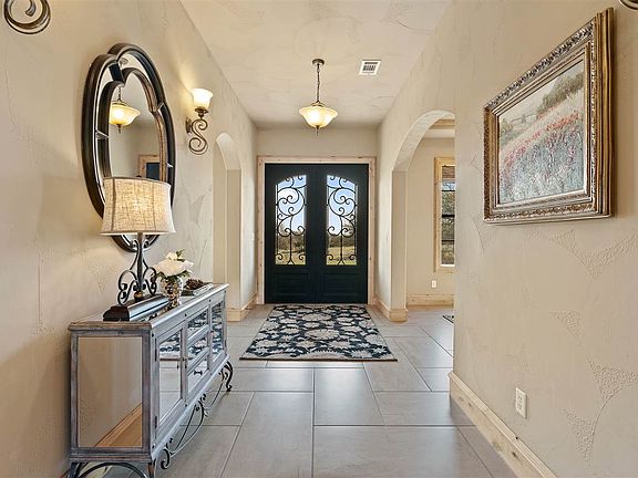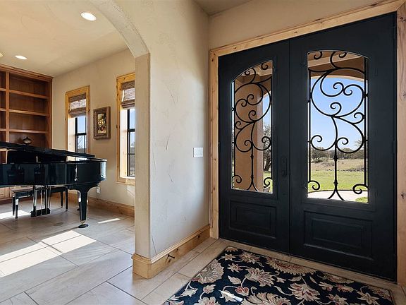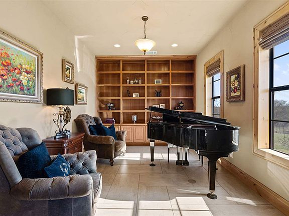 Country elegance blooms in this dramatic, custom home set on 31.72 acres in Greystone Ranch. Look no further for peace and privacy than this rare find in Burnet country! With gently rolling terrain throughout, accentuating the many mid-to-large size oaks and allowing for dramatic hill country views from both the front and rear covered porches, as well as the upstairs balcony, the predominantly level acreage views like a quintessential Texas painting - depicting peaceful tranquility, complete with wildflower patches and lovely blue hills beyond. This 2-level, four-bedroom home with formal living, dining, flex space, multiple living areas up and down, and truly gourmet kitchen will meet your every expectation. Italian imported oversized Spanish tile flows throughout the downstairs area. Primary suite down includes oversized walk-in shower, jetted tub and private covered porch. Kitchen is a cook's dream and boasts Wolf appliances, including professional-grade gas stove, massive center island with copious storage, 3 sinks, built-in deep fryer, microwave, wine refrigerator, walk-in pantry with abundant shelving and more. Large laundry room with sink opens to mud area and 1-car attached garage. Detached 2-car garage also boasts significant additional space suitable for a workshop or equipment storage. Wildlife exemption in place. Horses allowed. Domestic livestock and exotic animals allowed. Bow and rifle hunting allowed.