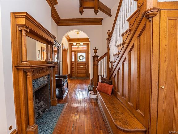 Built in 1897 for pharmacist Andrew Briggs as both his pharmacy and residence, this was prominent Richmond architect Henry Baskervill's first project. Extensively renovated in 2008, this spacious home boasts 11-foot ceilings, 12-inch baseboards and impressive moldings, and 3 large oval rooms (2 bedrooms and the parlor). The magnificent hexagonal dining room will host memorable celebrations. The large family room and open flow make entertaining a breeze. Chefs kitchen with top of the line appliances and skylight. A lovely primary bedroom and bath offer plenty of space and modern amenities. The third-floor bedroom has access to a loggia (balcony) with an expansive view of the skyline. Second-floor laundry room. Ten fireplaces add historic charm throughout the home. An enormous unfinished basement with shelving provides tons of storage space. Positioned on a corner at the clasp of the Historic Fan District, the home is flooded with light from over 35 windows. Garage and additional parking spot in the rear. Close proximity to the Fans best restaurants, Altria Theater, and VCU Arts and sports venues. Welcome home!