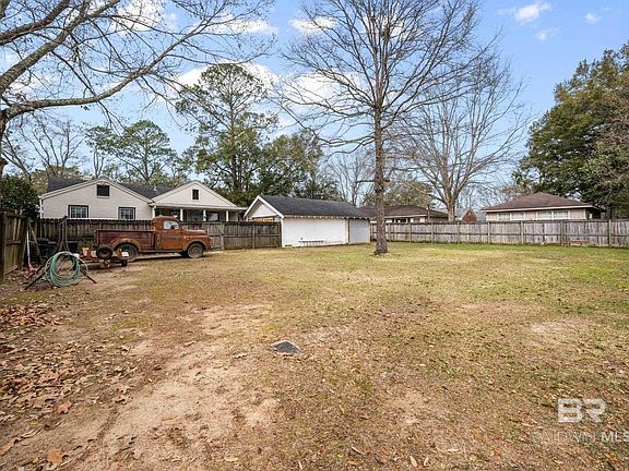 Adorable 3 bedroom, 2 bath, brick cottage located in the heart of Bay Minette. Kitchen offers stainless appliances, tile flooring, recessed lighting, backsplash and white cabinetry with plenty of storage. Hardwood floors in the dining & living rooms, hallway and all three bedrooms. Neutral interior colors throughout. Large covered rear porch, with metal roof, overlooking side/rear yard. Detached garage with adjoining workspace. Large, flat corner lot with a privacy fenced backyard perfect for the kids and/or pets! Dimensional roof replaced approximately 7 years ago. Pride of ownership! Easy to show!
