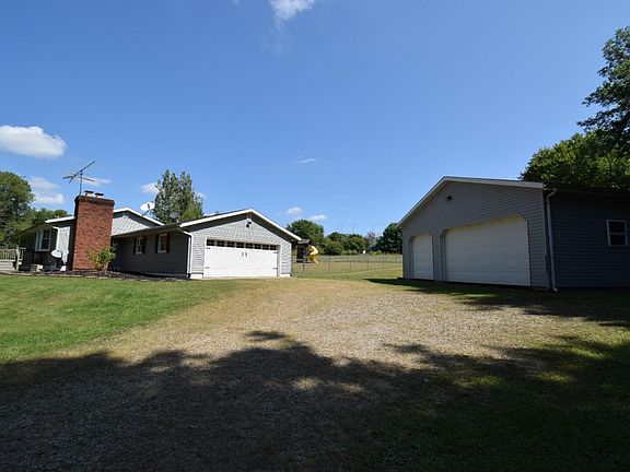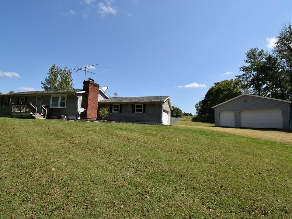 This 3 bedroom 2 bath home has a 2 car attached and 3 car detached garage on 2 acres surrounded by trees for secluded feel.