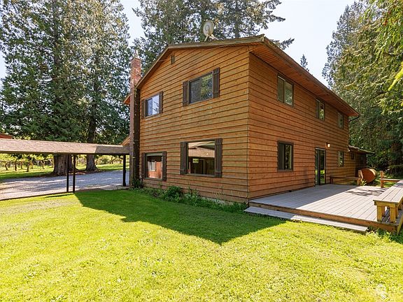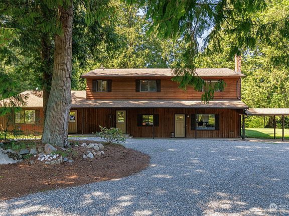 Rare opportunity to own large acreage in desirable mid-county location. 45 acres which include wooded areas, orchard, garden & pasture potential. Large 5+ bedroom, 2.75 bath home. Main floor spacious primary bedroom with free standing stove, skylights, large ensuite with air tub and large closet. Living spaces are bright and open with tons of windows taking in the private setting. Deck perfect for entertaining extending along one side of home. Upper level has 4 bedrooms & office. Lower level has tons heated storage space. Circular driveway offers access to the house with breeze way to outbuilding with single car garage, shop space and heated office space with ¾ bath has potential for ADU. RV parking, great schools. Endless possibilities.