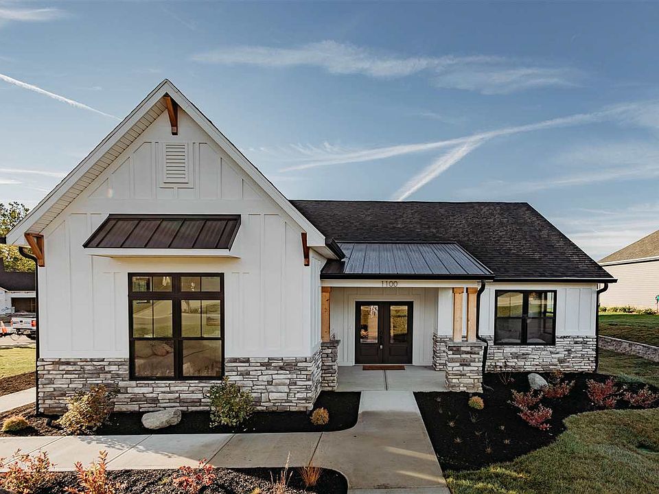 Exquisite in every detail this outstanding Modern Farmhouse ultra-custom home custom home has 3 bedrooms 2 and one half full baths, and has just been completed for you, located in the sought after Sandbridge Hills subdivision on a large and amazing professionally landscaped corner lot and constructed by the amazing builder “ Trademark Construction “ with interior design assistance by Natalie Next Door this home boasts over 2,300 SF with many custom features and many fine amenities such as a designer interior trim, an open dining room with solid surface floors and large windows, several oversized closets, a large multi-cabinet kitchen with top of the line stainless appliances including a large oversized bar, solid surface countertops, an open great room/living area with high beamed ceilings, many solid surface floor coverings, a large beautiful 4 seasons room and rear patio with tons of privacy, a 3-car attached garage with extra ceiling height, an amazing study, a security system, a true owners master suite with top of the line finishes including a soaking tub, dual vanities, oversized walk-in closet, and custom tile work, and too many more additional amenities to list. This home has been constructed with no expense spared. Call or text Kyle Tom today @ 765.220.0199 to schedule your own private tour or visitkyletom.com for additional details. Amenities sheet available online.