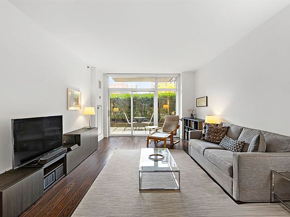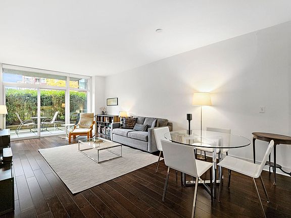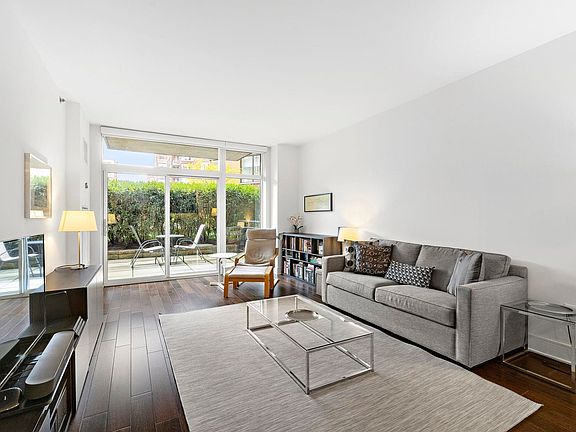 Walk right into this beautiful and unique 1 bed, 1.5 bath home with a 250sqft attached private patio in the luxury waterfront complex, 1100 Maxwell Ln. The chef’s kitchen features custom cabinetry, stainless steel appliances, and a full breakfast bar. A perfectly laid out living and dining space leads right out onto the private patio, making it perfect for entertaining. The primary bedroom is spacious with a walk-in closet and an ensuite bathroom. The apartment also includes a half bath for guests, 3 additional closets, hardwood floors, custom window treatments, an in-unit washer/dryer, and 1 deeded parking space. The community’s luxury amenities include 24/7 concierge, 2 gyms, 2 pools, 2 playrooms, 2 rooftop decks with BBQ grills, community rooms, and shuttle service to and from the Path. Conveniently located near the NYC Ferry, bus stop, and all that uptown Hoboken has to offer.