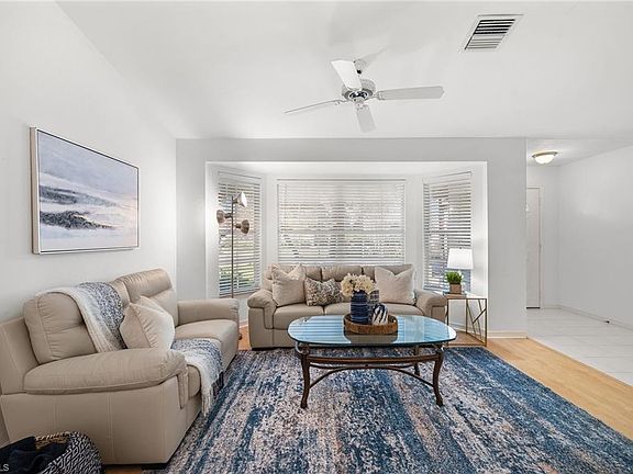 Quaint coastal charm just minutes from downtown Naples! Situated in a mature and established neighborhood, this move-in ready, three-bedroom-plus-den home has been freshly painted on the inside and offers comfort, versatility and convenience. Featuring a cozy living room, spacious family room and a formal dining room, perfect for relaxing or entertaining. Split bedroom floor plan is appreciated when guests come to visit and gives everyone their own space. The eat-in kitchen offers stainless steel appliances, elegant Cambria quartz countertops, breakfast bar and a generously sized pantry. The possibilities are endless for the enclosed porch, providing a flexible area for a fitness room, play spot or sunlit retreat. Easy to maintain with tile and laminate floors; no carpet anywhere. The vaulted ceilings bring a sense of openness and grandeur, enhancing the natural light and elevating the overall design. Primary shower has been updated with decorative tile and a frameless glass door. You'll love the large, private fenced-in backyard with a brick paver patio, ideal for hosting barbecues or enjoying tranquil evenings under the Florida sky. Plenty of storage in the attached, two-car garage. You'll also enjoy living in a gated subdivision with access to a community pool and tennis courts. Flood insurance is not required. Water heater replaced in 2021 and AC unit was replaced in 2019. Across the street you will find Publix, Starbucks, restaurants, hair and nail salons, pet supplies, and dry cleaners, to name a few. Just 2.5 miles from historic downtown, the art district, upscale shopping, fine dining and the city's famous white sandy beaches. Easy access to I-75 to get to Southwest Florida International Airport. Discover the ultimate Florida lifestyle in one of Naples' most sought-after locations. This is your chance to own an incredible property and make your dream life a reality — right here, right now! Don’t miss out on this amazing opportunity.