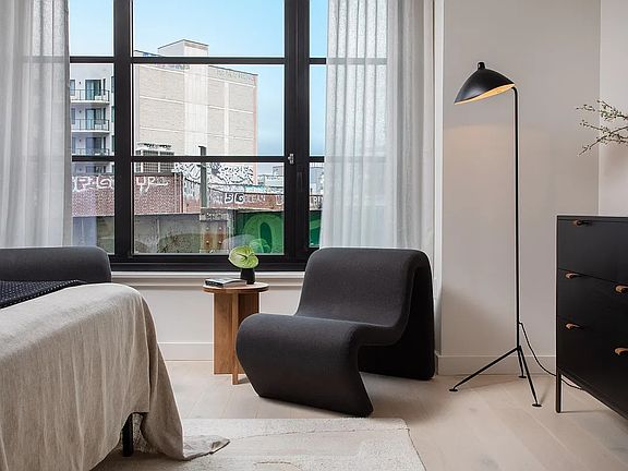 Introducing The MC, a new forward-thinking rental development where your ticket to clarity and good fortune is offered through a combination of modern design and spiritual attributes that lie within the walls of this unique offering. Each of The MC's 233 studio, one- and two-bedroom residences boast designer living that encourages meaningful self-expression and a new outlook on true positive thinking. With highlights that include oversized floor-to-ceiling windows, soaring ceilings, trendsetting kitchens, and spa-like bathrooms with layers of luxe finishes, this elevated lifestyle allows residents to enjoy a canvas to reflect their own personal aesthetic and surroundings. Open layouts offer flexibility to accommodate dining areas or home offices and select residences offer private outdoor terraces or roof decks. The MC provides residents with the opportunity to connect mind with soul within their own homes each day. The host of practical amenities and services inside make everything about life at The MC pure Brooklyn. Lifestyle amenities and building services include: Building Amenities* Indoor: Attended Lobby Co-working Library Lounge Media Lounge Billiard Lounge State-of-the-art Fitness Center Featuring: o Cardiovascular Training Machines o Multi-use Weight Machinery o Spin Bikes o Outdoor: Free Weight Training Equipment 3,000 Square Foot 2nd Floor Co-working Amenity Terrace 11,000 Square Foot Outdoor Roof Deck with Lounging and Sunbathing zones and Dining Areas A Private Rooftop Dog Run Daily Services & Amenities Attended Lobby Concierge 24 Hour Self-Serve Package Room Live-in Building Super Dedicated Building Manager Pet Washing Station Attended Indoor Parking Garage* with Electric Vehicle Charging Available Bicycle Storage* *Additional fees may apply For your daily commute, The MC is located just around the corner from the Myrtle Ave J, Z & M subway station or the B54 and B16 bus stops for a quick ride throughout Brooklyn and Queens. Pictures are of model unit
