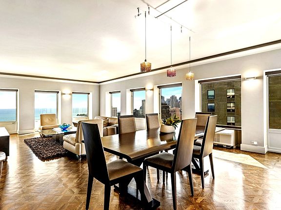(Motivated Sellers) Chicago will never look -- or feel as good as it does from this 36th-floor urban retreat whose 17 windows celebrate Lake Michigan and the city's dazzling architecture. Fall in love with the beauty and serenity that envelop this luxurious two-bedroom plus family room (easily converted back to a third bedroom). Situated on Chicago's prestigious Lake Shore Drive, two blocks from Michigan Avenue in the heart of the historic Gold Coast, this sought-after corner unit has been meticulously and elegantly reconfigured to facilitate easier living. Enter through the gracious foyer that divides the living and sleeping areas. Windowed walls flood each room with natural light from eastern and southern exposures regulated via remote-controlled blinds. Updated on-trend parquet flooring and raised door frames throughout add to the home's stylishness. The spectacular one-of-a-kind chef's kitchen features a 10-ft stainless steel island and matching countertops complimented by Vallcucine Italian cabinetry and top-of-the-line appliances including a Miele refrigerator and built-in coffee maker, integrated Thermador wine refrigerator, Kuppersbusch cooktop and oven, Fisher & Paykel dishwasher and abundant cleverly concealed storage. The adjoining family room/den augments the kitchen's hospitality potential, creating a cozy and inviting space for gatherings and relaxing. The over-sized living room and dining area, ideal for entertaining with even a wet bar, invite you to enjoy their extensive double-exposure vistas. The crown molding's unique cove lighting that surrounds this area and its adjoining hallway and foyer give it added panache. Traverse the length of the cove-lit second hallway off the kitchen and you'll discover the large primary bedroom with double custom closets. An attached small hallway houses a massive, custom walk-in clothes closet and leads to the beautifully designed and enlarged ensuite bathroom with premium tiling and lighting, a free-standing soaking tub, dual-sink floating vanity and spa-like shower. A spacious second bedroom with room for a king-sized bed and additional furnishings also boasts a large custom closet. A handsome full bath with natural stone finishes and a large shower is conveniently located just across the hall. Closer to the foyer lies an attractive powder room with a similar stone motif and another huge walk-in closet with a Bosh washer/dryer and more storage. The unit does not share its elevator foyer with anyone else. Michael Jordan once called this modernist, intimate skyscraper home. Designed by Harry Weese, the Chicago architect who created dozens of iconic buildings and homes throughout the country and America's most beautiful metro in Washington, DC, it has always inspired a devoted following. Amenities include 24-hour door staff, on-site management, fitness room, and an almost completed remodeled hospitality room with full kitchen, a new guest suite that can be reserved for Building residents' guests, sun deck, attached valet parking for 250 a month, guest parking, storage and a bike room. The building's location also enjoys a Walker-Paradise designation and top scores for biking and transit. Imagine walking out your lobby door to a shimmering lake and Oak Street Beach beckoning you along with Rush Street restaurants, Michigan Avenue shopping, cultural and sports attractions, top-tier medical facilities and Lincoln Park. Tour this one now and experience living from a spectacular perspective.