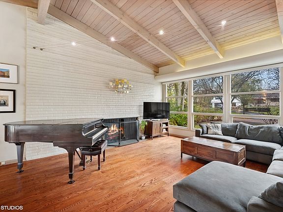 Charming Mid-Century on a lovely street and a gorgeous property in Glencoe. Stunning original features throughout including striking volume ceiling and hardwood flooring, a huge screened porch large, newer windows bringing in fantastic natural light and a sub basement. Spacious kitchen has newer appliances and can be opened up to dining room and main level living room with its enormous fireplace. Three generously sized bedrooms up including primary suite with two closets and private bath, with additional full hall bath. Lower level fourth bedroom, separate laundry space and egress. Expansive basement family room featuring wetbar and large storage and utility space. Attached 2-car garage and circular driveway for convenience. Host guest or find relaxation in the serene treelined backyard. Showings will begin this Friday/Saturday/Sunday, 11/18. Come visit us!
