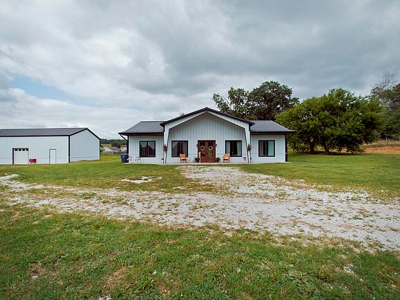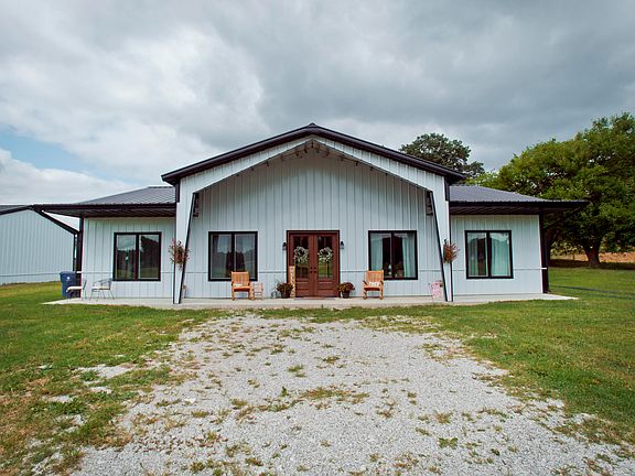 Modern, custom-built barndominium on 23.1 flat acres finished in 2025 with a 1,500 sq ft detached garage and stunning finishes throughout. Featuring vaulted ceilings, laminate floors, and a full wall of windows, the open-concept living space includes a designer kitchen with butcher block counters, gold fixtures, and custom cabinetry. The spacious living room offers a shiplap fireplace and access to a covered patio. The primary suite boasts a spa-style bath with soaking tub and a walk-in closet that feels like a boutique. A bold home office, stylish guest bath, and large laundry area add comfort and functionality. The detached garage offers an oversized door perfect for RVs, equipment, or home business use. A charming chicken coop and gently rolling land make it ideal for farming. Located within walking distance to The Pinnacles and Stephenson Memorial Park trails, and just minutes from Berea and I-75. A rare blend of luxury, utility, and outdoor living. This is a parent listing for 288 Short Line Pike and 1100 Pauley Ct, Berea, KY.