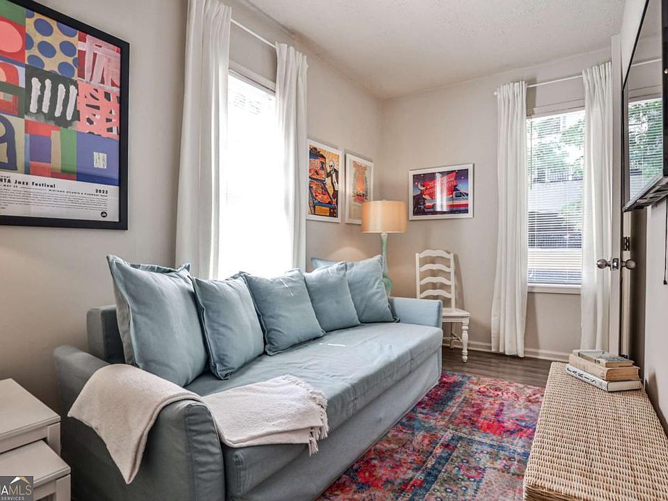 Welcome to the trendy, easy lifestyle of living in midtown Atlanta - directly across the street from Piedmont Park, close to Park Tavern, The Nook, Atlanta Botanical Garden, and a quick stroll to a variety of dining, nightlife and shopping options. Whether on foot, scooter, or in a car, you can quickly get to the grocery store, a doctor's appointment, or your local pharmacy. At 1100 Piedmont, most everything is just a few moments away. Thinking primary residence or a pied-a-terre? Looking for an alternative to dorm life at Georgia State or Georgia Tech? You'll appreciate the location and all it offers! Enjoy convenient street parking (front) or the private parking lot (back) with direct building access. This end-unit condo lets sunlight pour in, making this space cheerful and bright! Though technically a studio, a newly constructed wall gives privacy for a bedroom space and defines the entertaining and public space of the living room. The renovated kitchen features stainless appliances, white cabinets and quartz countertops, as well as a separate space easily used for dining or a home office. With a walk-in closet and timeless bathroom finishes, including white subway tiles and a large window, you'll discover this cozy condo has a lot to offer! Welcome to intown Atlanta living! You're going to love the location and vibe of this condo!