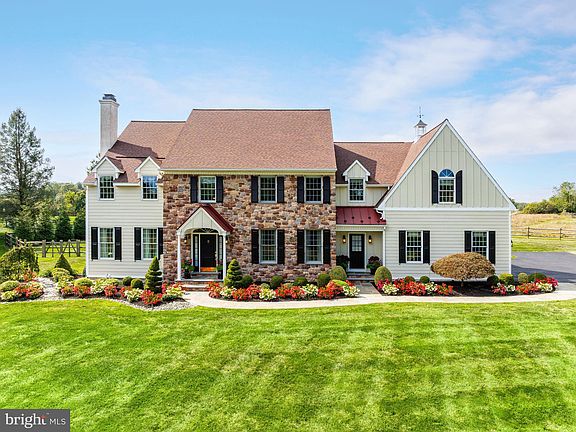 Welcome to 1100 Pineville Road, a spectacular Bucks County estate on 2.27 acres that blends timeless design with resort-style living, located just minutes from the charm of New Hope and the conveniences of Doylestown. This impressive property greets you with a tree-lined drive, manicured gardens, and a stately stone façade that sets the tone for what awaits inside. Step through the grand two-story foyer where natural light pours through expansive windows, highlighting hardwood floors, refined millwork, and an open floor plan designed for both everyday comfort and elegant entertaining. A formal living room with fireplace and an elegant dining room provide the perfect setting for gatherings, while a private office with built-ins offers an ideal space to work from home. The heart of the home is the gourmet kitchen featuring custom cabinetry, granite counters, high-end appliances, a large center island, and a sun-filled breakfast area that flows effortlessly into the dramatic two-story great room, complete with a floor-to-ceiling stone fireplace and walls of glass overlooking the backyard oasis. Upstairs, the luxurious primary suite is a private retreat with dual custom closets, a spa-inspired bathroom with soaking tub, double vanities, and glass-enclosed shower, plus a versatile area ideal as a sitting room. Additional spacious bedrooms are thoughtfully designed with generous closets and access to well-appointed bathrooms. The fully finished lower level extends the living space with a full bathroom, dry bar, game and billiards area, home theater with stacked stone accent wall, fireplace, and a dedicated fitness room and multiple zones for recreation and relaxation. This level was designed for both entertaining and everyday enjoyment, offering the flexibility for movie nights, hosting friends, or unwinding at home. Outdoors, the backyard is a true showpiece with a heated in-ground pool and spa surrounded by lush landscaping and hardscaping, creating the ultimate setting for entertaining or peaceful retreat. A covered pavilion with built-in BBQ grill and dishwasher makes al fresco dining effortless, while multiple seating areas invite gatherings under the open sky. From morning coffee on the patio to sunset swims and weekend barbecues, the outdoor living spaces are as functional as they are beautiful. Completing the property is a three-car garage, expansive storage, and thoughtful details throughout that combine elegance with practicality. With its perfect blend of sophistication, comfort, and resort-style amenities, 1100 Pineville Road is more than a home, it is a lifestyle waiting to be experienced.