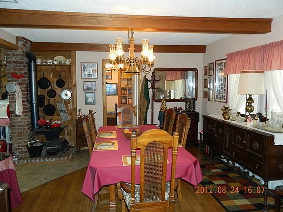 This country bungalow offers elegance & charm for the new home owner. From the front covered porch, large trees, intimate side patio, garden spots, & old barn you will feel as if you stepped in to Country Living Magazine. Rustic wooden beams showcase not only the formal living & dining but extent into the homes kitchen. The kitchen, in the heart of the home, offers newer appliances, a pot rack, & old wood stove. Down the hall a old timey bath hosts an original claw foot tub and porcelain sink. Just beyond the kitchen a huge den w/ vaulted ceilings is centered by a rock fireplace. A bonus room is nestled above. The master offers a Jacuzzi & double vanities & closets. A double garage is separated by a breezeway & offers a bonus space above. This is a must see property w/ great space that could easily be a 3-5 br home.