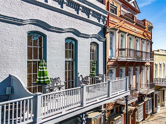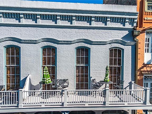 The trifecta of three bedrooms, garage parking, and a very wide balcony offering stunning views of the CBD and River, situated in the heart of the French Quarter, presents a unique opportunity. This property, housed in a circa 1884 Thomas Sully-designed former commercial building, has been updated to accommodate modern living and is in a highly sought-after location, ready for immediate move-in. A dumbwaiter located right next to your front door transports groceries up from the parking garage below.