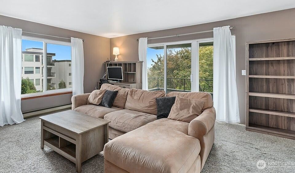 Perched on the 3rd floor, this condo captures stunning vistas that set it apart. From your private balcony, take in peaceful territorial views over the lush greenbelt, framed by striking Olympic Mountain sunsets. Enjoy unique sightlines to the downtown skyline and nearby stadiums, offering both natural beauty and vibrant city energy. Elevated placement ensures clearance for open outlooks, while abundant natural light enhances the interior. A rare opportunity to experience Seattle’s diverse scenery from one vantage point, this home blends tranquility and connection to the city with every view. Close proximity to transit and major highways allows for ease of access in & out of the city, adding to the attractive nature of this unit!