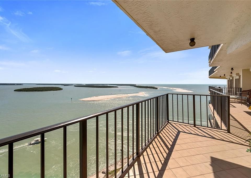 Welcome to Shipp’s Landing — Marco Island’s premier waterfront destination! This stunning 15th-floor residence in the highly desirable south-facing 24 stack offers breathtaking panoramic views of the Gulf of Mexico, Caxambas Pass, and the Ten Thousand Islands. Watch dolphins play and boats cruise by from your private, oversized balcony perched high above the sparkling waters. Step inside through the floor to ceiling glass doors and find a welcoming, turnkey-furnished home filled with warm, natural light and endless views. The extensive balcony, large living-dining area, and modern kitchen with considerable countertop and cabinet space make this home in the sky the perfect place for hosting your family and friends. The primary suite is a true retreat with balcony access, sweeping water views, and a large ensuite bathroom featuring a double vanity and walk-in shower. Guests will feel at home in the comfortable second bedroom with adjacent full guest bath. Additional features include in-home laundry room, a large storage closet off the hallway, and covered parking. Shipp’s Landing is a private community renowned for its resort-style amenities including three pools, a spa, a state-of-the-art fitness center, tennis and pickleball courts, boat docks, a private beach area with kayak launch and storage, fishing pier, bocce, shuffleboard, and clubhouses — all nestled along beautifully landscaped grounds. Whether you’re seeking a full-time residence, a seasonal getaway, or a smart investment opportunity, this residence offers the perfect blend of luxury, comfort, and unbeatable island lifestyle. Move-in ready and waiting for you to make it your own! Don’t miss this rare opportunity to own one of the best vantage points Marco Island has to offer. Schedule your private showing today! Estate sale.