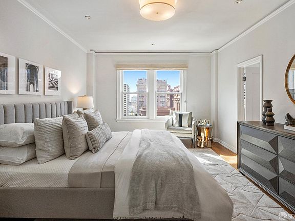 Bathed in natural light from its enviable southeast corner position, Residence 504 combines timeless elegance with modern sophistication. Oversized windows frame sweeping city vistas, including Huntington Park and Grace Cathedral and peek-a-boo views of Coit Tower. With three bedrooms and three full bathrooms-two of which are ensuite-the home's grand proportions are immediately evident. A formal dining area, expansive living room anchored by a gas fireplace, and a chef's kitchen with a large peninsula counter create a floor plan ideal for both entertaining and daily living. The kitchen features a full suite of Thermador appliances, complemented by custom cabinetry by Korts & Knight and Blizzard Caesarstone countertops. Extensive crown moldings and picture rails throughout the residence emphasize the home's architectural pedigree, while hardwood floors, recessed lighting, and surround sound in the living room enhance comfort and refinement. Additional features include in-residence laundry, one-car parking, and private storage. Residents of Park Lane enjoy a 24-hour doorman, grand lobby with a viewing garden, and fitness room. Perfectly positioned atop Nob Hill and surrounded by San Francisco's most iconic landmarks, from the Pacific Union Club to the Fairmont and Mark Hopkins.