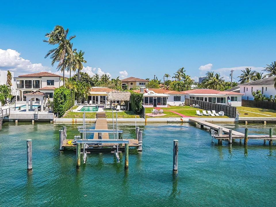 Discover this beautifully updated bay front property boasting breathtaking, unobstructed views of the open bay. This charming home features 3 bedrooms and 2 bathrooms, along with an open kitchen that flows into a spacious living area. Step outside to a large terrace, relax in the heated pool with a jacuzzi, or enjoy the exterior tiki hut--perfect for entertaining. Wander through the backyard to your private dock, complete with a 20,000 lb. boat lift and direct access to open waters, making it an ideal retreat for boating enthusiasts. Situated in the secure, 24-hour guard-gated community of Stillwater Drive, this home is just minutes away from Indian Creek, Bal Harbour, shops, and restaurants.