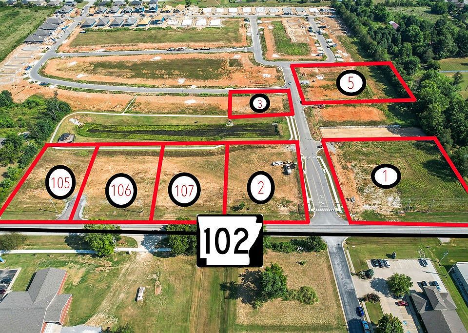 4.45 acres made up of five Commercial lots (C-2) in newly established Woodcrest Walk Subdivision. Substantial Hwy 102/Centerton Blvd frontage. All utilities on site. Please note the acreage has been updated since attached survey was done due to ARDOT's future Hwy 102 improvements/widening. Prospective buyers are encouraged to confirm utilities and property taxes for themselves. See also MLS#s 1326082, 1326095, 1326108, 1326110 and 1326112 for individual listings of Commercial Lots 1, 2, 105, 106, 107. (Mult-Family Lots 3 and 5 have already been sold.)
