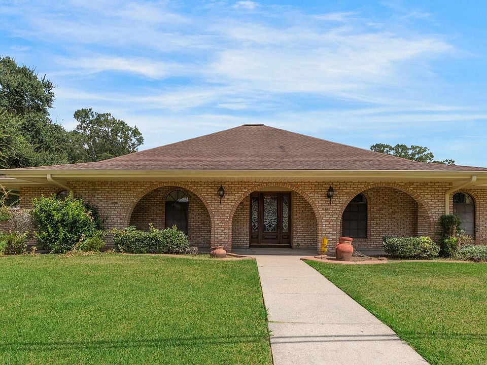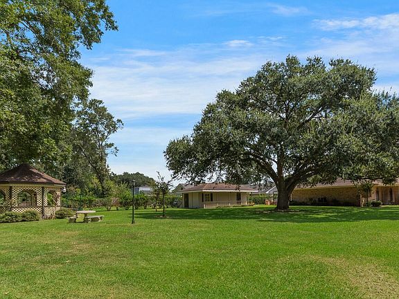 Welcome to this custom built single owner meticulously maintained dream home with 3 bedrooms and 2.5 baths. Upon entering through the stained leaded glass front door is the foyer leading to the spacious living area with ceramic tile flooring, a built-in entertainment center and a brick fireplace. The formal dining room opens to the kitchen and breakfast area. The kitchen has ample custom cabinetry with granite counters and back splash. Down the hallway is a full bathroom and the large guest and primary bedrooms with beautiful pine floors. The primary bedroom includes an extra closet, the bathroom with a large walk-in closet, double sinks and a large free standing shower. The spacious sunroom with lots of natural light, beaded wood ceilings is off the living room and leads to the open patio with access to the guest house or man cave. Overlooking a custom gazebo surrounded by large oak trees. All situated on a .35 acre corner lot with easy access to shopping, I-10 and I-49.