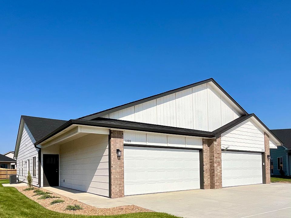 Enjoy relaxing at home in this low maintenance twin home! Open Living / Kitchen / Dining with 3 bedrooms, 2 baths and 2-car garage. Primary bedroom features a walk-in closet and private bath with shower. Granite countertops and stained concrete floors throughout. Zero entry and located on a cul-de-sac. Awesome new Goddard community with neighborhood ponds, park, pool and storm shelter. HOA also includes lawn maintenance, mowing, sprinklers and wells. Close to Goddard schools. Adjacent to Prairie Sunset Trail. Information deemed reliable but not guaranteed, verify school and tax information. Each side is being sold individually for $189,500 or buy both sides for $380,000. Great Investment opportunity!!