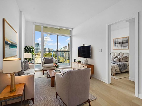 Secure underground parking adds everyday ease to this 8th floor home at Nest by Chard. Built in 2024 with steel and concrete construction and still under warranty, this west-facing one-bedroom, one-bathroom condo pairs peace of mind with sleek, Scandinavian-inspired design. The open-concept living and dining area seamlessly flows into a private deck, while oversized windows frame stunning sunset views. The kitchen has been elevated with upgrades, including a waterfall quartz countertop, a full-height backsplash, and undercabinet lighting, which complement the integrated Fisher & Paykel appliance package. The 4-piece bath features heated floors and porcelain tile for a spa-like touch. Thoughtful extras include a storage locker, an on-site gym, dog wash station (pet-friendly) and children’s play area, fob entry, and bike storage. Ideally located on the edge of downtown, you’ll enjoy easy access to Fernwood’s charm, Harris Green’s energy, and Victoria’s best restaurants, cafés, and shops.