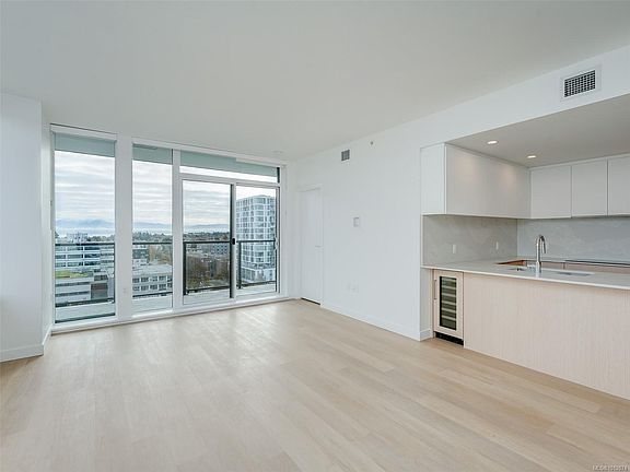 Welcome to THE NEST! This is a newly built 1000+ sqft 9th Floor SOUTH facing Air Conditioned 2 bed 2 bath Luxury CORNER UNIT Condo offering OCEAN & OLYMPIC MOUNTAIN VIEWS! Enter inside to find an amazing layout with opposing bedrooms, open concept living space with floor to ceiling windows to the South and expansive windows to the East including a view of the Craigdarroch Castle! The “U” shaped kitchen is spacious with quartz counter tops/backsplash and has Fisher & Paykel appliances including a panel ready refrigerator, double dishwasher, induction stove stop, built in oven, built in microwave, wine fridge and ample drawer/cabinet storage. Primary bedroom has a walk in closet and ensuite bathroom with heated tile floor & walk in shower with thick glass. Don’t forget about your MASSIVE BALCONY looking out to the Ocean & Mountains. There is storage, underground parking, bike storage Gym & dog wash. Enjoy convenience of living Downtown Victoria and all of the amenities it has to offer!