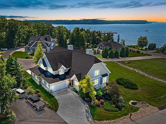 REDUCED. Must-see luxury home for sale. This is a lovely water view condominium that offers ample space for entertaining and protected westerly views of the waters and sunsets, all a short distance from downtown Sister Bay. Custom upgrades throughout---it's been meticulously maintained and updated. Main floor offers a primary suite & laundry, custom cabinetry, fireplace, hardwood floors and vaulted ceilings. Two more bedrooms are upstairs, along with a large bathroom with dual sinks and a water view loft. Lower level offers a well-appointed great room with a wet bar area, plus a 4th bedroom & full bath. Includes land in front to protect your views. Truly a carefree-living, Door County dream home (most furnishings negotiable): call now.