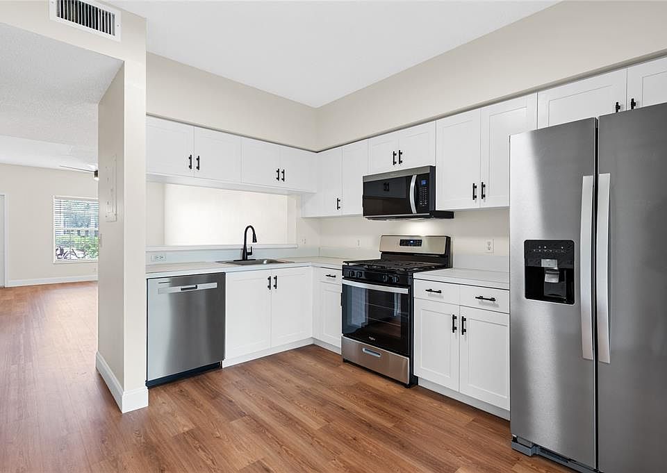 Corner Townhome with a Single Family feel! The perfect blend of style, space & location!! Natural light pouring in from the North & South. Brand New Luxury Waterproof Vinyl Flooring on 1st & 2nd floors * New 5" Baseboards * Large kitchen w/updated cabinets, brand new kitchen appliances plus Brand New Washer/Dryer * New fans, lighting fixtures, faucets, door knobs * New Custom Vanity * Just Painted Inside! * Outside Painted & Pressure Washed Patio * Extra storage closet in roofed & screened patio * LOW $314/mo maintenance ** BONUS ** Seller is willing to give buyer concessions to buy down the interest rate or put towards closing costs * 3 mi. to Sawgrass Expwy & 6 mi to the Sawgrass Mall * Located on a private side street of the Community - Walking distance to Sunset Point & Tephord Park