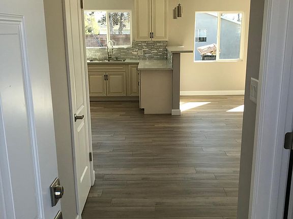 Beautifully remodeled front house of a duplex with its own private front and backyard. The entire house has been through a complete renovation. The house has four bedrooms and two full bath. Open floor plan with a large living room, a fireplace and large sliding doors facing the private backyard. Remodeled kitchen with new cabinets, quartz countertops, and stainless steel appliances. Completely remodeled bathrooms with modern tile and vanities. Laundry hook ups. Laminate floors. Central AC/Heating. Must see!
