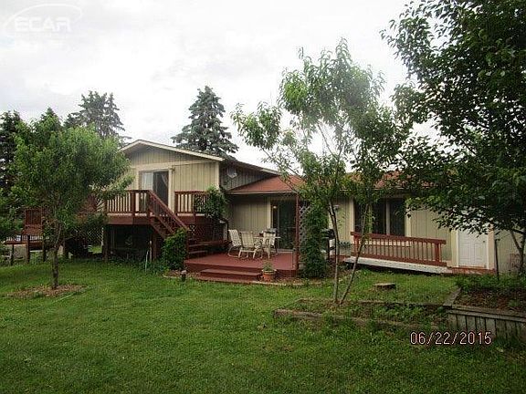 Horse barn with 2 stalls and chicken coop. Additional barn with 220, cable television for the man cave. Above ground pool with deck. So much to see and do on this 5 acres out in the country. Add to that a roomy tri-level home with 3 bedrooms and 3 full baths. One bathroom is handicap accessible. Plenty of room for hanging out or entertaining with a fire lit family room and a living room. 2 car attached garage plus extra 1 car garage.