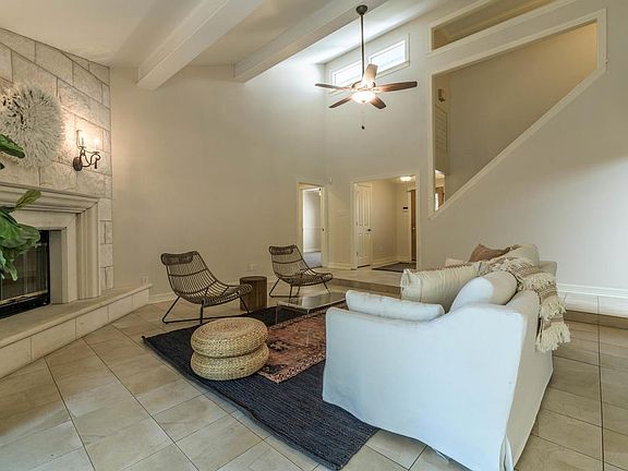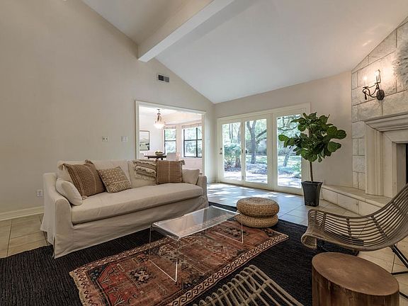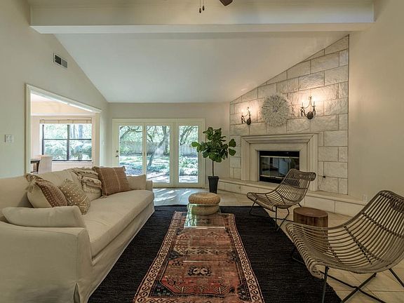 Bright & open floor plan with high ceilings & skylights. Was updated in '07 w/ chef's kitchen, silestone counters & SS appliances. 3bd/2.5ba home is located on a cul-de-sac & 1/3 of an acre lot backing to the Oakview Neighborhood Park (private access to park). The plan offers room for an office/flex room/media/guest room. The lush backyard w/ mature trees is serene & private, perfect for entertaining inside & out. Great location in Windridge, zoned to great schools & ready for your personal touch! Fresh interior paint!