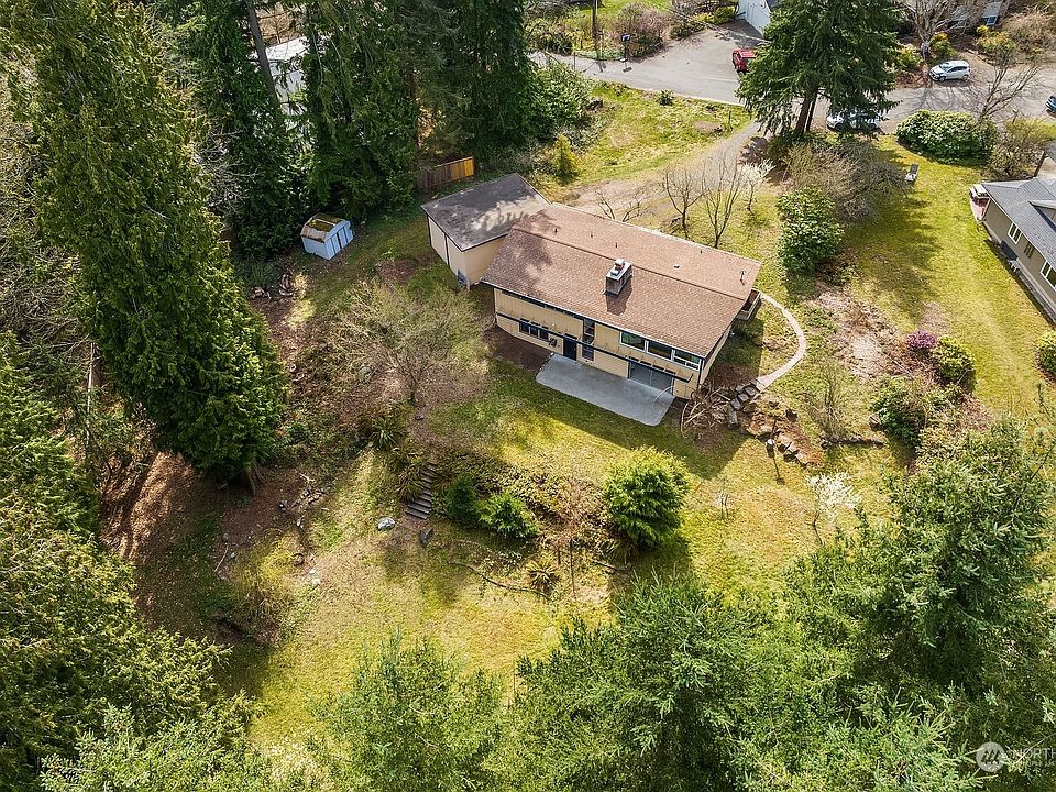 Remodeled Mid-Century Modern on a quiet, private 26,000sqf lot! Potential to divide into 2 lots w/ SVV Zoning & min lot size of 9600sqf per tax parcel (buyer to verify). Located on a tree-lined, dead-end street a stone's throw away from Downtown Bothell, UW Bothell, Burke Gilman Trail & Transit Center, this custom home was extensively remodeled w/ top-quality finishes. Open floor plan boasts vaulted ceiling w/ large picture windows, southern exposure w/ tons of natural light, chef’s dream kitchen, Dekton counters, updated baths, new master suite w/ walk-in closet, two fireplaces, real hardwood floors, updated flooring & fixtures. Huge rec room on LL level offers limitless possibilities – 4th bed, home office, gym or mother-in-law apartment.