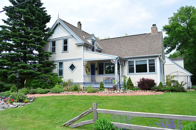 Main house features 2 bedrooms, 2 full baths. Large 3rd bedroom/study above attached garage has kitchen and 3rd full bath. Main house 1st floor offers open concept living: dining room flows into updated kitchen/great room with fireplaceand breakfast nook, separate den adjoins full bath, utility room, 2nd floor has 2 bedrooms and 2nd full bath. Endless possibilities for the 3rd bedroom/studio above garage with kitchen, 3rd full bath and interior access door through mudroom and garage, also private exterior entrance. Enjoy the oversized deck, 1.7 acres of perennial gardens and side patio off mudroom for another place to relax outside.