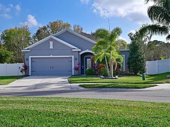 This beautiful home features 4 bedrooms and 2 baths with a 2 car garage on a peaceful oversized, preserve view lot. Beautiful kitchen with generous island, wood cabinets, granite counter tops, tile floors, pantry, and all stainless steel appliances. Family room has doors leading out onto an extended covered lanai, then to an open-air Patio, Owners master bedroom features and en-suite bathroom with double vanity sinks, dual shower heads in shower and a generous walk in closet. Located on a 1/2 cul de sac. This is a phenomenal community with all the activities at your finger tips. Basic cable included in monthly fee along with 2 cable boxes! Copperstone is a gated community with great amenities including two community pools, splash zone, playground, tennis courts, scenic ponds and lush landscaping, and a main clubhouse with lounge/entertaining space. All of this, located just a short distance from I-75 and I-275 access for driving into Sarasota, St.Petersburg, and Tampa Bay.