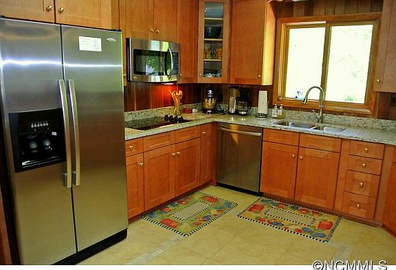 Immaculate home recently up-graded with all new Country Amish Cherry Cabinets, granite countertops, stainless appliances, new HAVC, new windows; cedar lined closet in master, tiled walk-in shower; 2-fireplaces; interior walls are a mixed variety of natural hardwood boards that add a vibrant, eclectic and multifaceted character to this superb abode; a full drive-in basement for lots of storage or parking, plus carport on entry level