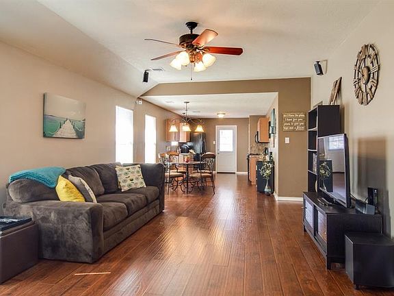 Super cute home ready for new owners! Open floorplan with laminate wood flooring in the livingroom, dining and kitchen. Features great counterspace in the kitchen. Lovely designer paint and updated light fixtures give the house a very homey feel. Fabulous outdoor area with covered patio and deck yet still has space for play equipment. Don't miss out on this home! Schedule your tour today.