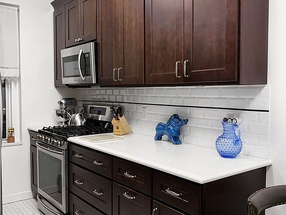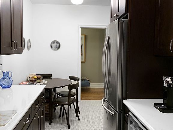 Upscale, Quiet, 1 Bedroom/1 Bath 900+ sq ft apartment in well-maintained co-op building in the very best Forest Hills location. Steps to Austin St with great markets, dining and shopping . Enjoy peace outdoors in the beautiful streets of Forest Hills Gardens as well as the private courtyard of the building. This huge 1BR has high ceilings, an elegant custom designed eat-in kitchen w/stainless steel appliances and quartz countertops, designer bathroom w/tub. King-sized bedroom and 4 custom California Closets throughout. Two closets are walk-ins, and one has been cleverly converted into an office with built-ins and electric. High-end, designer light fixtures. Two large Friedrich window A/C units included. Solar shades throughout and black-out shades in the bedroom. Charming pre-war details and beautiful hardwood floors. No Pets, private storage in sparkling clean basement available. Camera secure property. Credit check and board approval required.