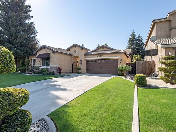 SUPER CLEAN SW Bakersfield Home For Sale! This magnificently maintained split wing home has 4 bedrooms and 2 baths. Before entering this home you are greeted by a private sitting area. Entering the home you will notice the large dining/sitting room and decadent crown molding. The living room has beautiful engineered wood flooring, ceiling speakers, and a fireplace. The open kitchen concept with walk in pantry boasts a granite island with built in newer stainless steel sink and dishwasher. The 5 burner range rests on a large slab of granite counter top accented by colorful tiled back splash perfect for the cook who demands lots of room. The spacious master bedroom has beautiful flooring and a large glass slider to a sitting area in the backyard. The master bathroom features dual vanity sinks, soaking tub, glass enclosed walk in shower, and mirror closet doors. Beautiful landscaped property with a babbling brook in the backyard. Not enough room to describe all of the home's attributes!