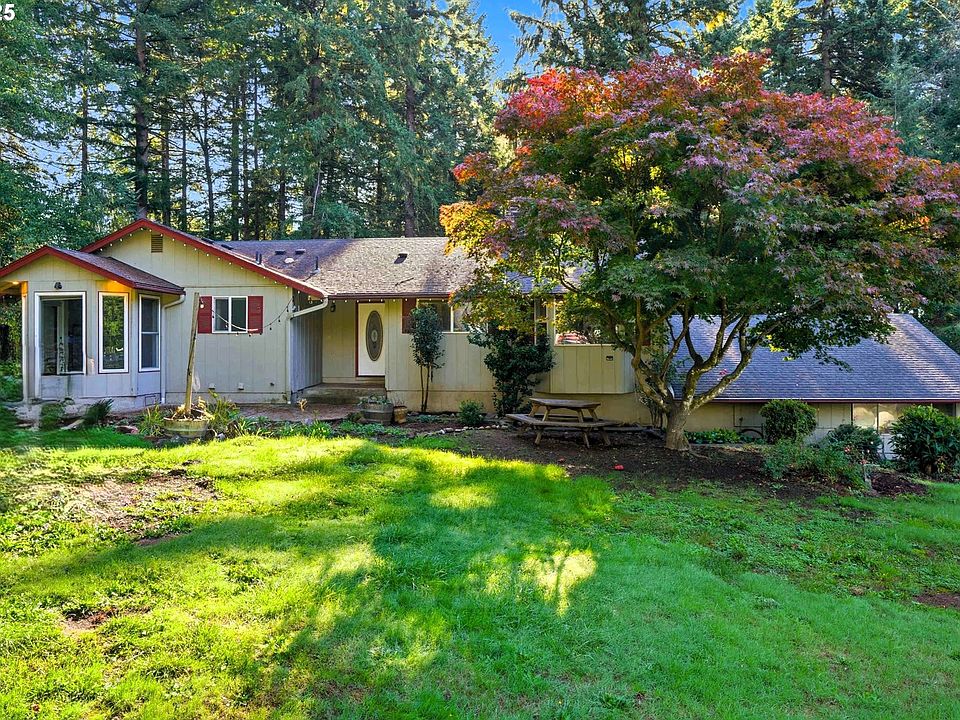 Discover the magic of living among the trees in this peaceful two-story home on nearly 5 forested acres—SOLD FULLY FURNISHED and complete with Starlink internet for seamless connection. Currently an Airbnb and ready for its new owner, as an investment or primary home. Inside, enjoy 3 bedrooms and 2 baths upstairs, an inviting living room with new hardwood floors, and an updated kitchen with new appliances. The daylight basement offers incredible versatility with 3 more rooms currently used as bedrooms (but easily could be office/den/hobby room), a full bath, media and exercise spaces, and a game room that opens to the patio, BBQ, and firepit—perfect for cozy nights under the stars. A mudroom with laundry & built in coat/backpack & shoe storage with an exterior entrance has been recently added. New Heat pump, HVAC and water heater in 2023. A new 20x44 steel-frame shop doubles as a woodworking or artist studio, alongside 2 Old Hickory sheds, an ADU tiny-home conversion in progress, and a garden with deer fencing, greenhouse, and fruit trees. Wander the wooded trails, visit the goat barn and chicken coop, relax by the pond and secret garden, or watch the kids play in the treehouse and geodesic dome. Please ask your agent for the Features & Updates Page, as too much to list here. Every detail invites you to slow down, create, and live inspired.